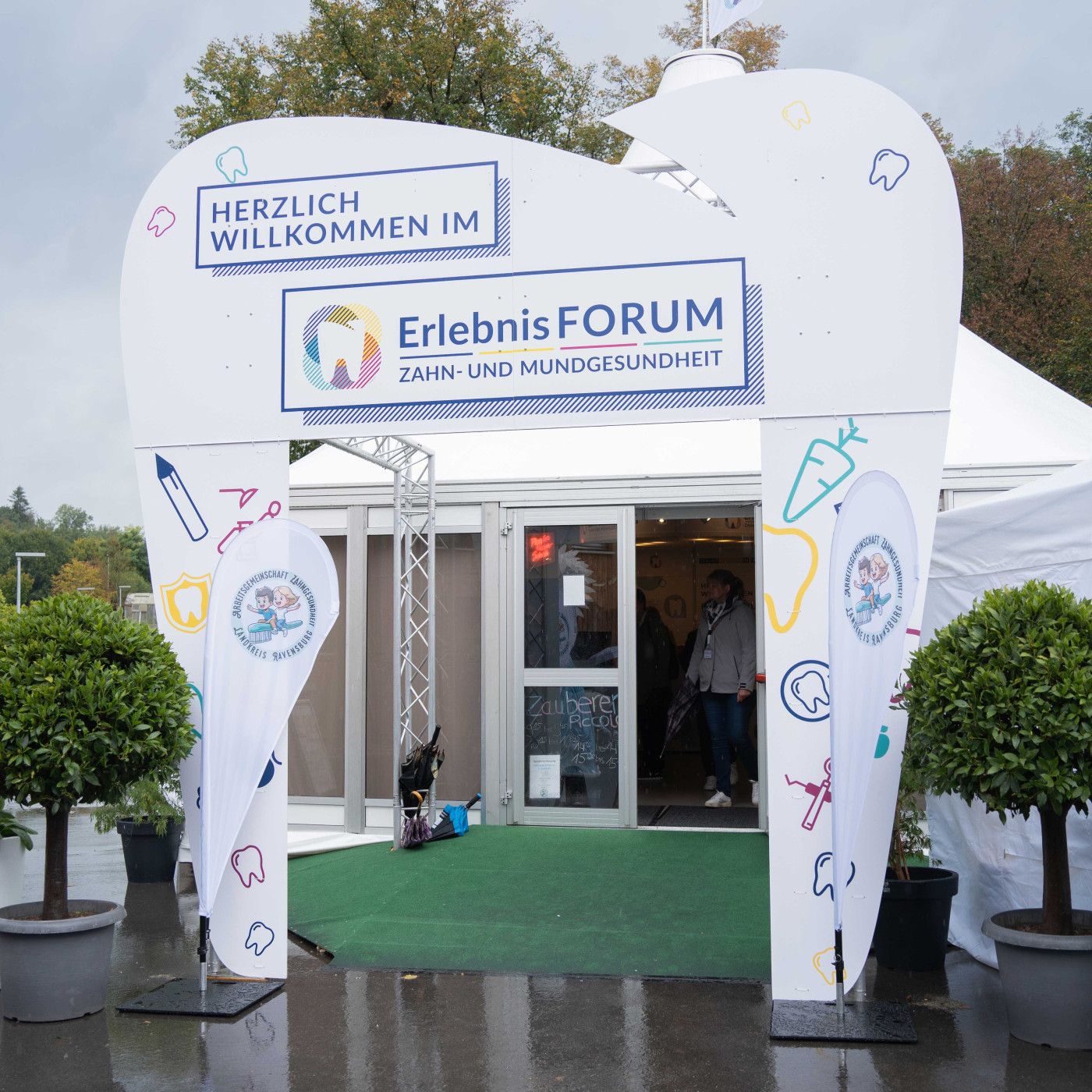 In den drei Tagen erhielten Kindergarten- und Schulkinder wichtige Informationen zu ihren Zähnen und der entsprechenden Mundhygiene. Das Programm, das vom diesjährigen Gastgeber der Veranstaltung, der Arbeitsgemeinschaft Zahngesundheit Ravensburg, zusammengestellt wurde, enthielt unterschiedliche interaktive Aktivitäten: In einem Plaque-Neon Tunnel konnten die Besucher Zahnbeläge sichtbar machen und diese am Zahnputzbrunnen danach entfernen. Unter dem Mikroskop haben die Kinder Bakterien, die von der Plaque im Mund stammen, entdeckt und außerdem die Möglichkeit genutzt, sich auf dem Zahnarztstuhl von Dr. Jens Gerhard Große kurz in den Mund schauen zu lassen.
