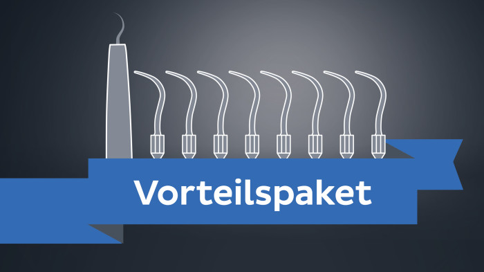 Unser Top-Angebot für die sanfte Piezo-Alternative: Beim Kauf eines SONICflex 2003L/2008L/LS Sets (KaVo SONICflex Scaler plus drei Spitzen Nr. 5/6/7 bzw. 5A/6A/7A) erhalten Sie fünf zusätzliche Einzelspitzen nach Wahl aus dem SONICflex Spitzen-Sortiment.