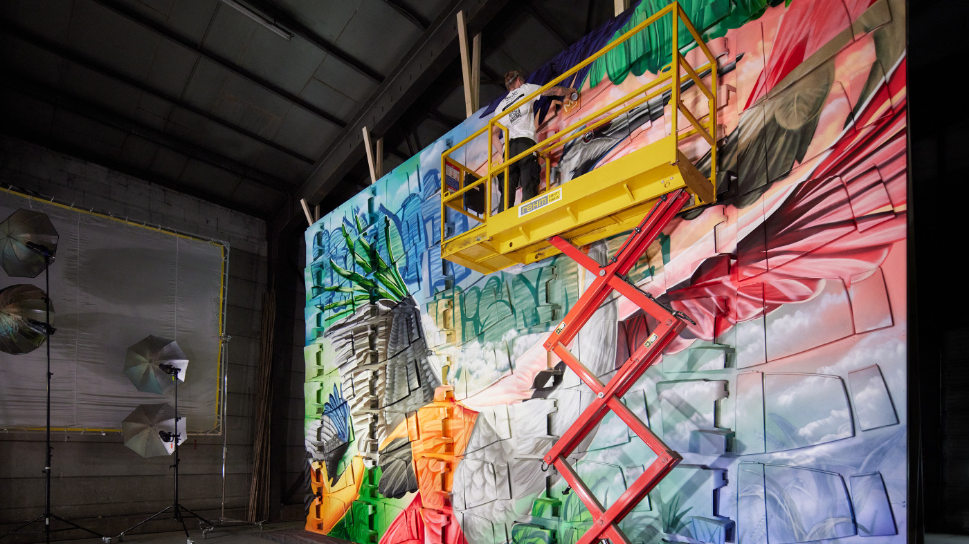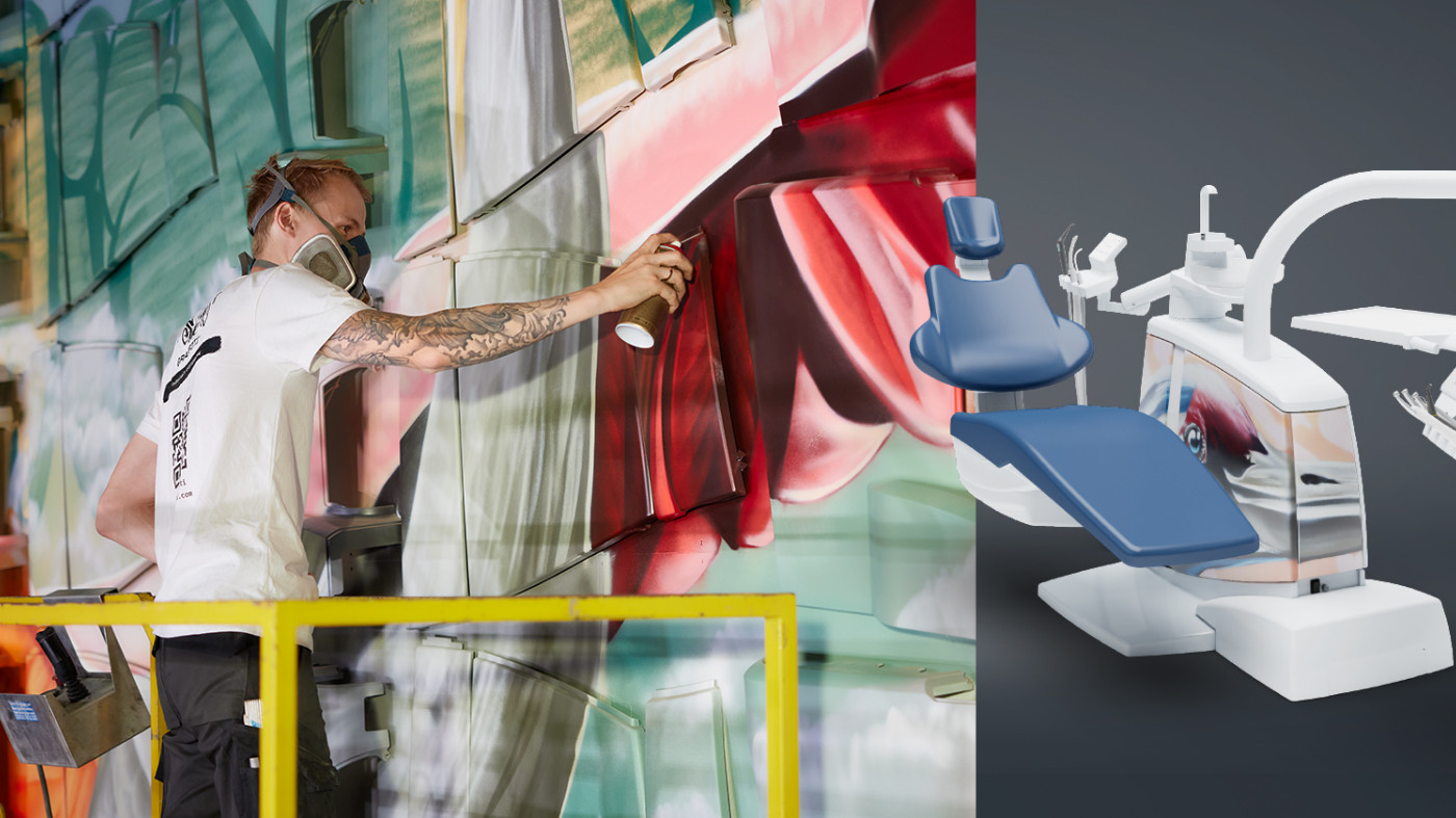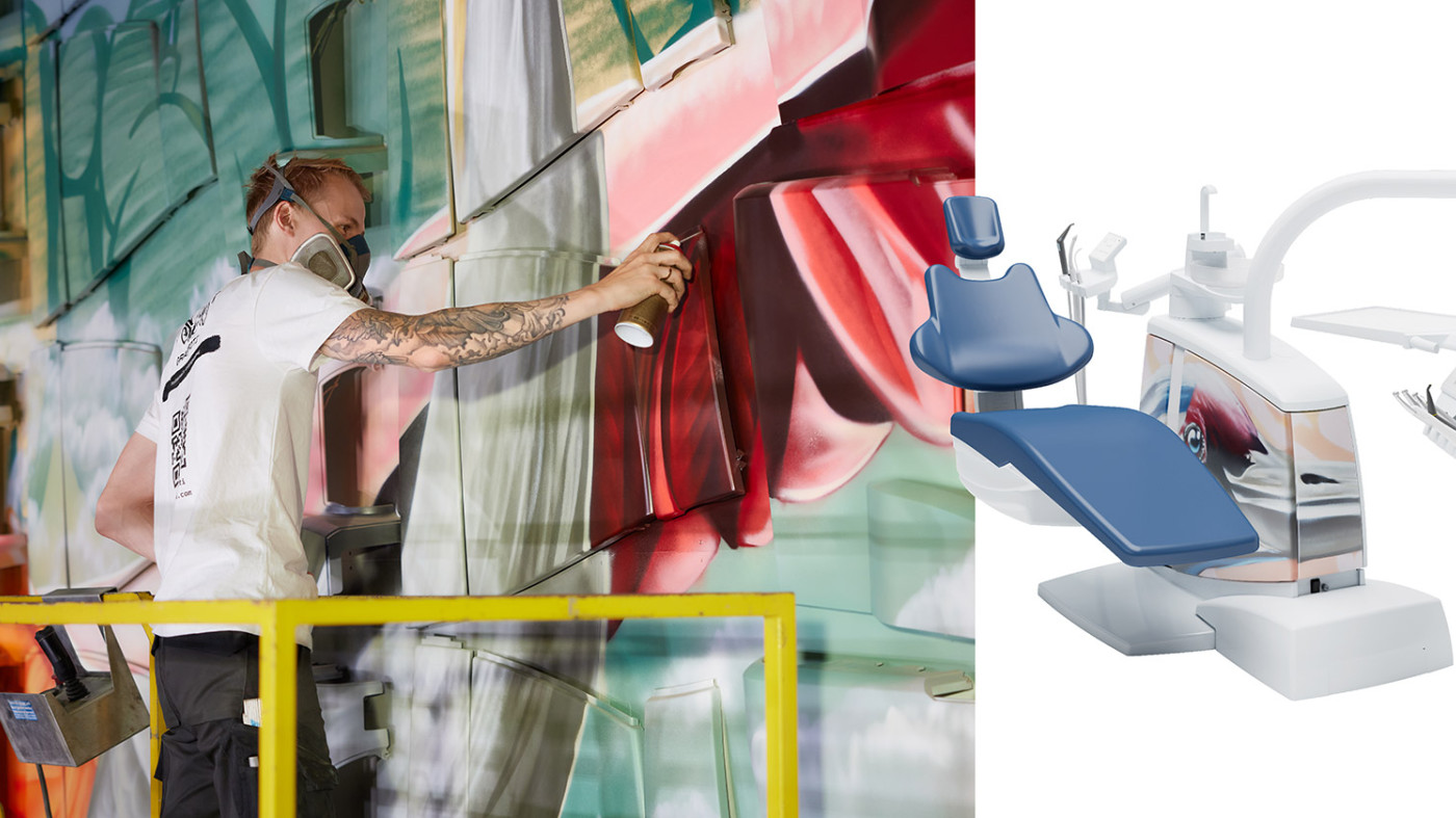Während der Kampagne hat der Grafitti-Künstler „Stone Graffiti“ innerhalb von vier Tagen ein beeindruckendes Gesamtkunstwerk eines Kranichs auf einer neun mal sechs Meter großen Wand geschaffen. Teil des Kunstwerks waren insgesamt 80 Gerätekörperlacksätze von den KaVo ESTETICA E70 und E80 Vision sowie KaVo uniQa Behandlungseinheiten, die auf der Wand mit dem Gesamtkunstwerk besprüht wurden und jetzt einzigartige Teile davon widerspiegeln. Die einzelnen Gerätekörperlacksätze wurden anschließend gemeinsam mit einem hochwertigen und handsignierten Kunstdruck des Künstlers an Zahnärzte auf der ganzen Welt verkauft.