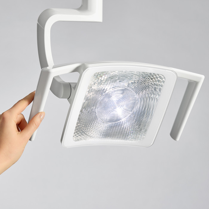 Die Ergonomie im Allgemeinen war bei der Entwicklung auch eines der wichtigsten Themen. So muss die optimale Positionierung der Leuchte maximal einfach, schnell und präzise funktionieren – und mit geringstmöglichem Kraftaufwand, damit in jeder Behandlungssituation schnellstmöglich und ergonomisch optimal gearbeitet werden kann.