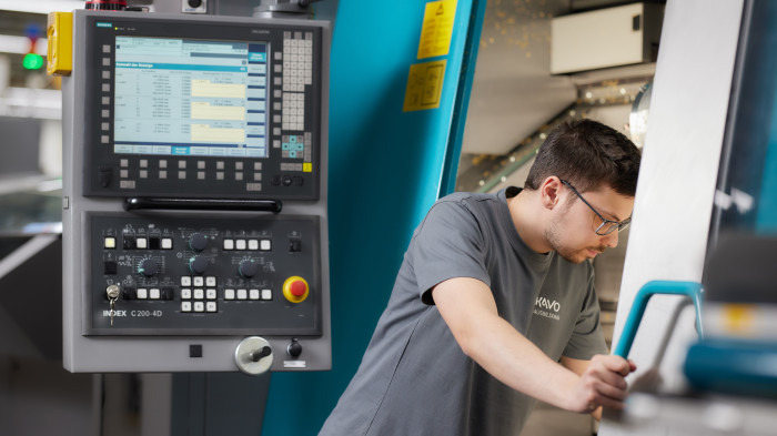 Du lernst, wie du mit verschiedenen Materialien Werkstücke mit Hilfe von konventionellen und computergesteuerten Maschinen fertigst – und das mit absoluter Genauigkeit. Während deiner Ausbildung wirst du den großen KaVo Maschinenpark kennenlernen und bekommst interessante Einblicke in die verschiedenen Fertigungsverfahren wie z.B. Drehen oder Fräsen.