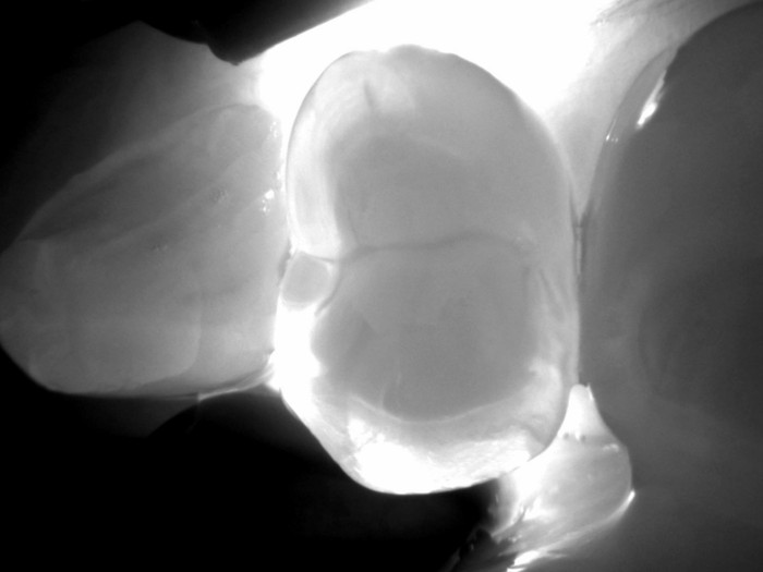 Die DIAGNOcam Vision Full HD verwendet für diesen Prozess Nah-Infrarot-Beleuchtung (NIR) anstelle von weißem Licht. Auf den Produktfotos können Sie sehen, das zwei kleine Arme am Gerät zu sein scheinen. Diese Arme werden über den Zahn geführt, um ihn von der bukkalen und lingualen Seite zu umschließen, und sie enthalten Glasfasern, die das NIR-Licht von beiden Seiten des Zielzahns abgeben. NIR dringt unschädlich und effektiver in den Zahn ein als weißes Licht und ohne Lichtverschmutzung. Diese Bilder sind genauso klar wie die intraoralen Bilder und können dem Patienten zur Erläuterung der Befunde vorgelegt werden.