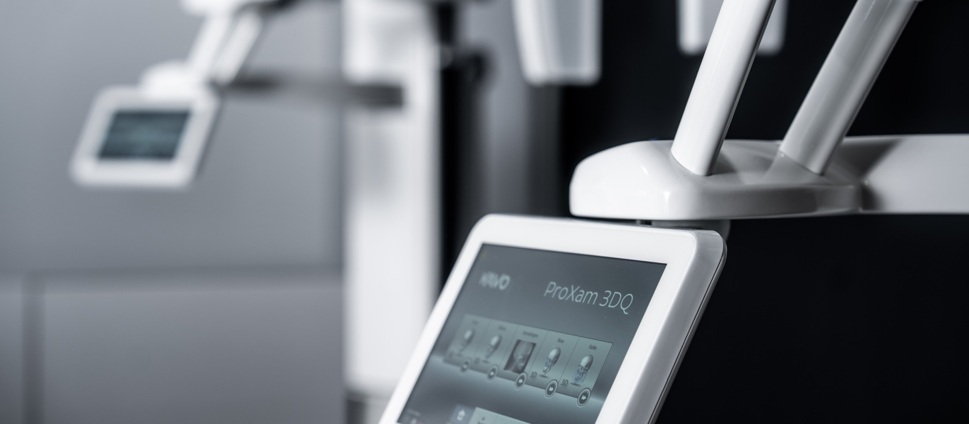 Die Positionierung des ProXam 3DQ für die Aufnahme ist sehr einfach und angenehm, weil sich die Aufnahmeeinheit bewegt und nicht der Patient. Früher habe ich den Patienten im Gerät hin und her gerückt, heute ist es genau andersherum. Auch bei kleinen DVT-Volumina zeigt mir das User interface alles ganz genau durch entsprechende Hilfslinien an, ich möchte es nicht mehr missen.