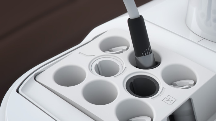 Dank eines angepassten Einsatzes im Hygiene-Center der KaVo Dentaleinheiten ist auch die Reinigung des KaVo eSCALER Instrumentenschlauchs intuitiv und einfach.