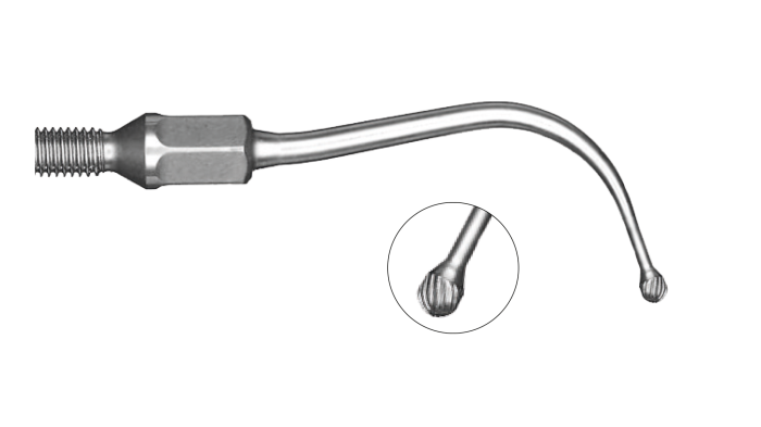 • Behandlung: Hartmetall-Spitze zum Exkavieren von Karies. Exkavation von großen Kariesläsionen. Abtrag von widerstandsfähigem Material sowie schnelle und effektive Entfernung des kariösen Materials. Sehr schonend für den Patienten, da keine Vibrationenübertragung. Besonders geeignet für Kinderbehandlung
