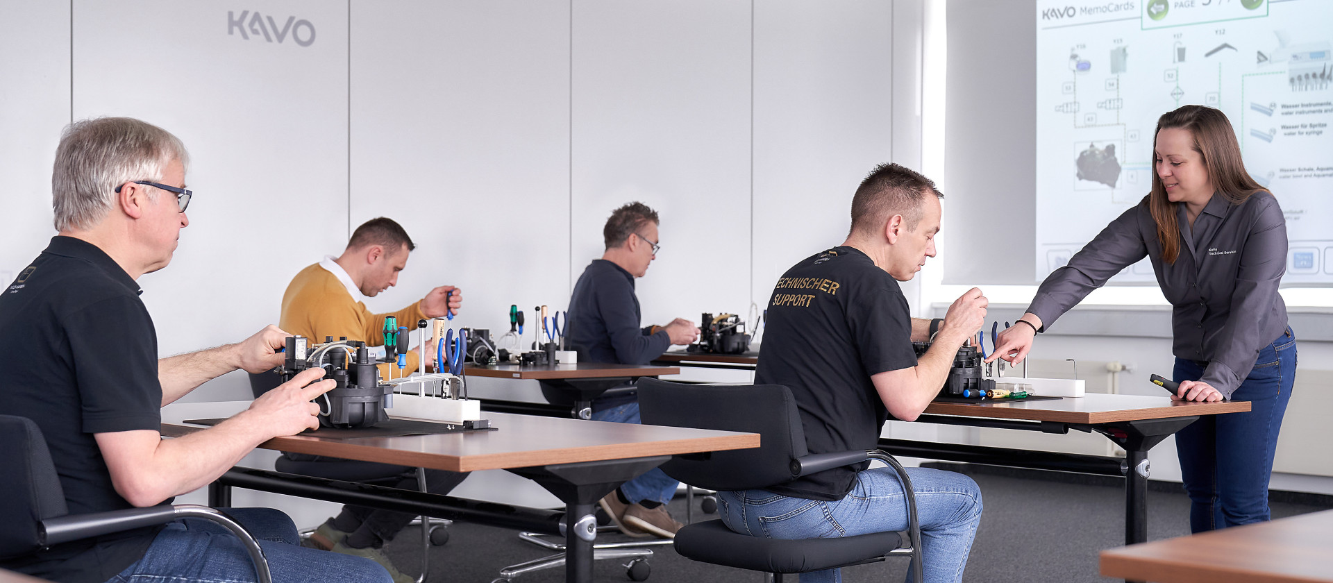 Jeder KaVo Fachhändler durchläuft den fundierten KaVo Zertifizierungsprozess. Das entsprechende KaVo Campus Service Training bildet die Techniker*innen sowie Vertriebler*innen des Fachhandels aus und sorgt so nicht nur für die hohe KaVo Service Qualität, sondern ist auch wichtiger Bestandteil der notwendigen KaVo Zertifizierung.