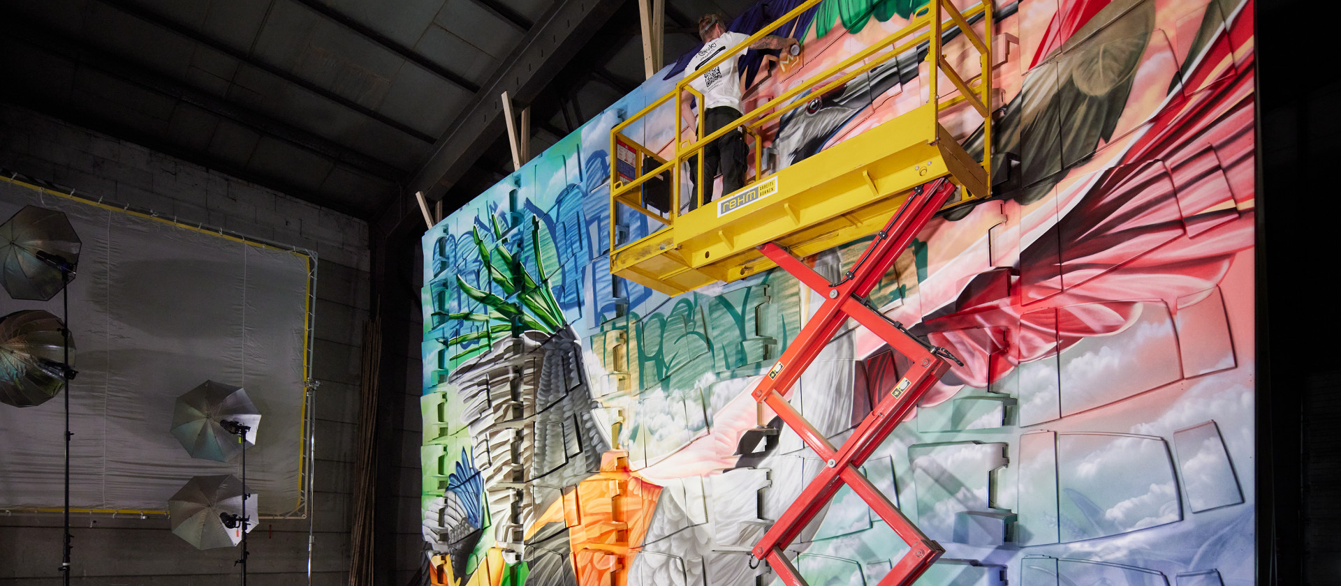 During the campaign, the graffiti artist “Stone Graffiti” created an impressive total work of art of a crane on a nine by six meter wall within four days. The artwork included a total of 80 device body paint sets from the KaVo Estetica E70 and E80 Vision as well as KaVo uniQa treatment units, which were sprayed with the overall artwork on the wall and now reflect unique parts of it. The individual unit body paint sets were then sold to dentists around the world together with a high-quality, hand-signed art print by the artist.
