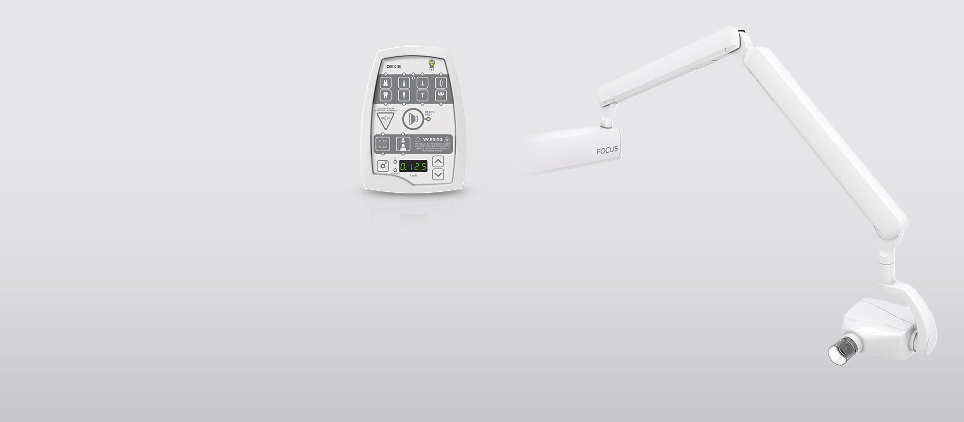 Valet av tre olika armlängder gör FOCUS till den perfekta röntgengeneratorn för alla mottagningar. Armens långa räckvidd säkerställer att DEXIS FOCUS röntgengenerator alltid kan placeras där den behövs.