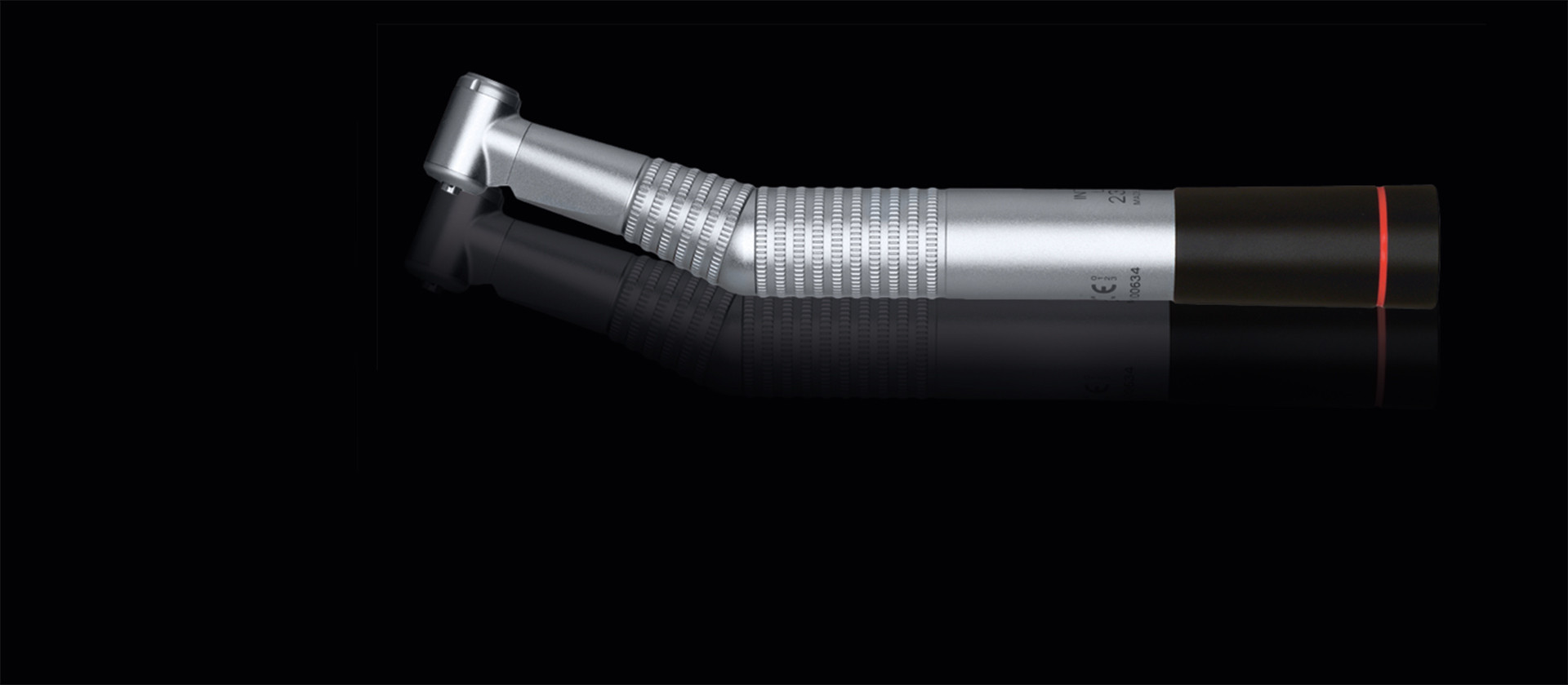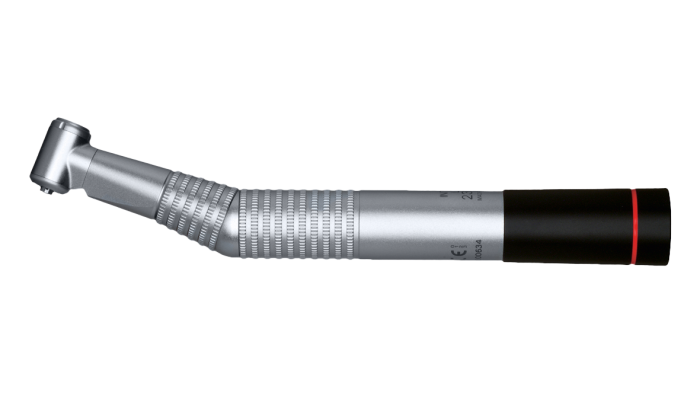 This slow speed handpiece's lighting system uses fused glass rods versus fiber bundle technology, resulting in no degradation of light qualify after repeated sterilization.