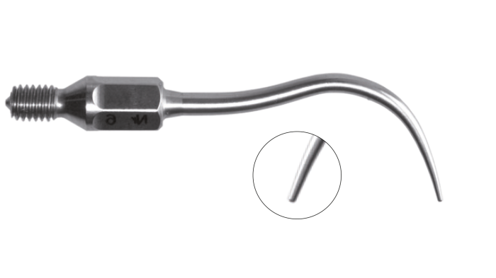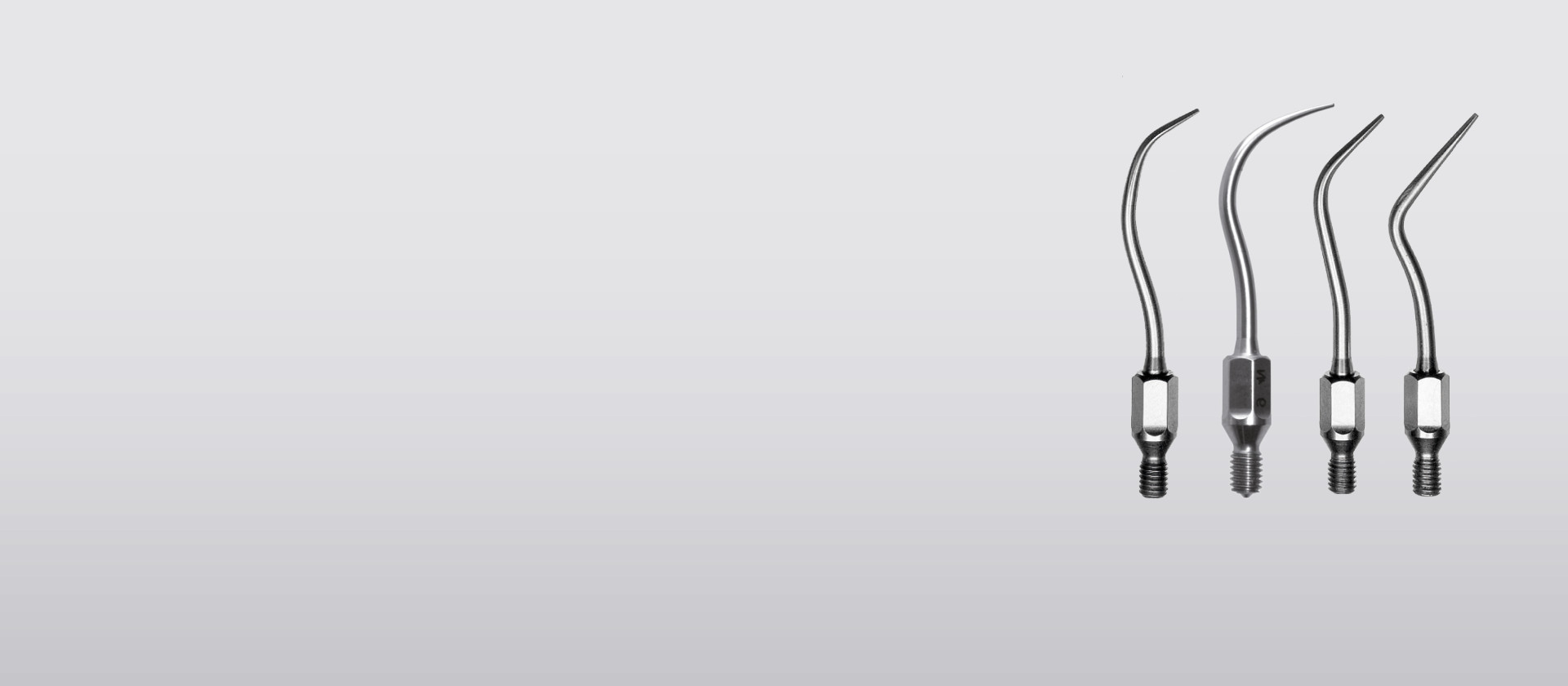 - 4 tips: Universal, Sickle, Perio, Perio extra long (subgingival treatment)