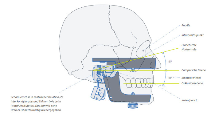 Permite una orientación sencilla del maxilar superior e inferior sobre los contornos del modelo en el simulador de mandíbula G20.