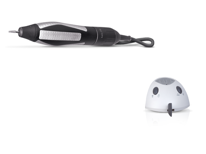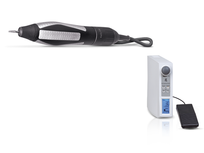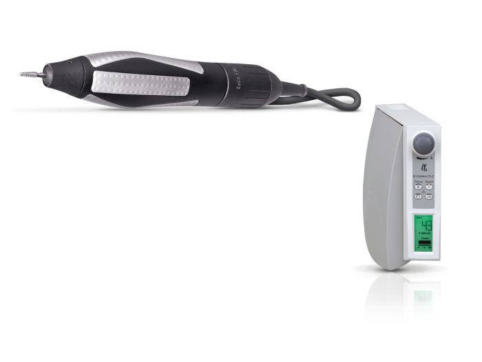 Unidad de control universal KaVo K-Control TLC con opciones que se adaptan a requisitos individuales o al espacio disponible (control de mesa, rodilla o pie), piezas de mano fáciles de sustituir gracias al reconocimiento automático de la pieza de mano, la versión de rodilla se puede acoplar a un gancho de rodilla KaVo K-Control existente, interruptor de seguridad para permitir velocidades de giro superiores a 30.000 rpm, en sentido horario y antihorario, en función de la pieza de mano, de hasta 50.000 rpm, 4 programas memorizables: ahorro en 4 segundos para una función de control de velocidad de 4 segundos, pantalla de 4 colores para una fácil diferenciación, acceso rápido a las velocidades y los pares preestablecidos con solo pulsar el control de velocidad.