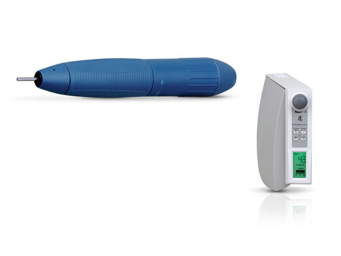 Unidad de control universal KaVo K-Control TLC con opciones que se adaptan a requisitos individuales o al espacio disponible (control de mesa, rodilla o pie), piezas de mano fáciles de sustituir gracias al reconocimiento automático de la pieza de mano, la versión de rodilla se puede acoplar a un gancho de rodilla KaVo K-Control existente, interruptor de seguridad para permitir velocidades de giro superiores a 30.000 rpm, en sentido horario y antihorario, en función de la pieza de mano, de hasta 50.000 rpm, 4 programas memorizables: ahorro en 4 segundos para una función de control de velocidad de 4 segundos, pantalla de 4 colores para una fácil diferenciación, acceso rápido a las velocidades y los pares preestablecidos con solo pulsar el control de velocidad.