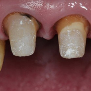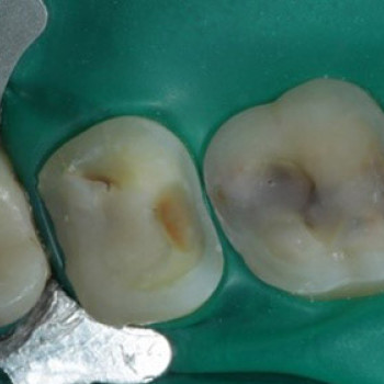 Le micro sablage permet de préparer rapidement les faces linguales de 12 à 23 avant la mise en place d’adhésif (Optibond eXTRa) puis de composite fluide avant le montage de facettes directe en composite (Harmonize).
