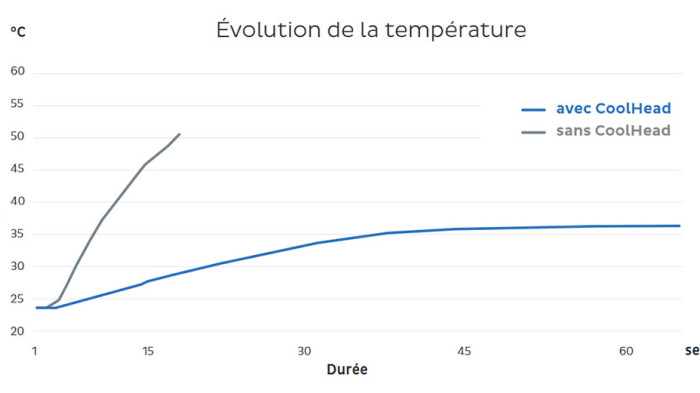 La nouvelle technologie CoolHead de KaVo empêche activement la surchauffe de la tête si le bouton poussoir est enfoncé de manière accidentelle.