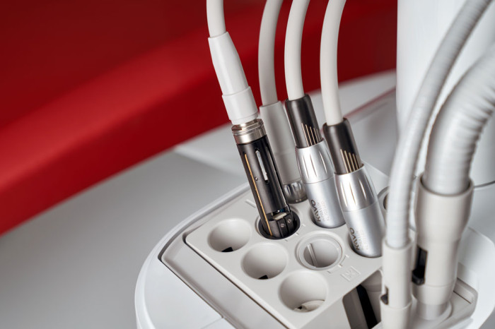 Soulagement et confort efficaces pendant les traitements chirurgicaux. La pompe pour liquide physiologique intégrée directement sur l'élément praticien(ne) et le support pour liquide physiologique rendent tout cela possible.