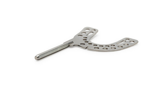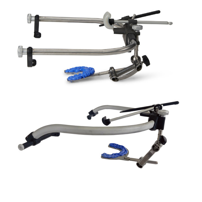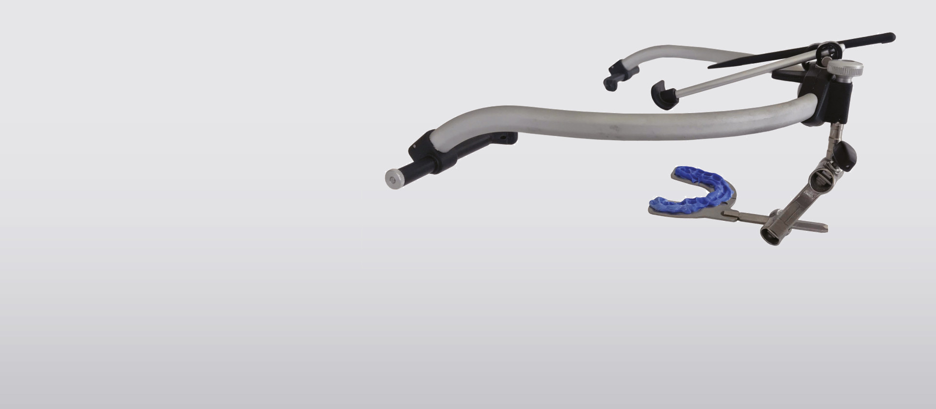 Met behulp van de beetvorkverbinder wordt de beetvork stevig aan de gezichtsboog bevestigd. De beetvork wordt betrouwbaar gefixeerd via een centrale bediening – geheel zonder gereedschap. De houder voor de beetvork is desinfecteerbaar en indien nodig steriliseerbaar.
