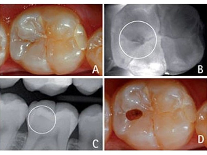 В данном исследовании представлен случай окклюзионно расположенного кариозного очага. Фиссуры на окклюзионной поверхности предрасположены к появлению кариеса в связи с ограниченными возможностями гигиены.