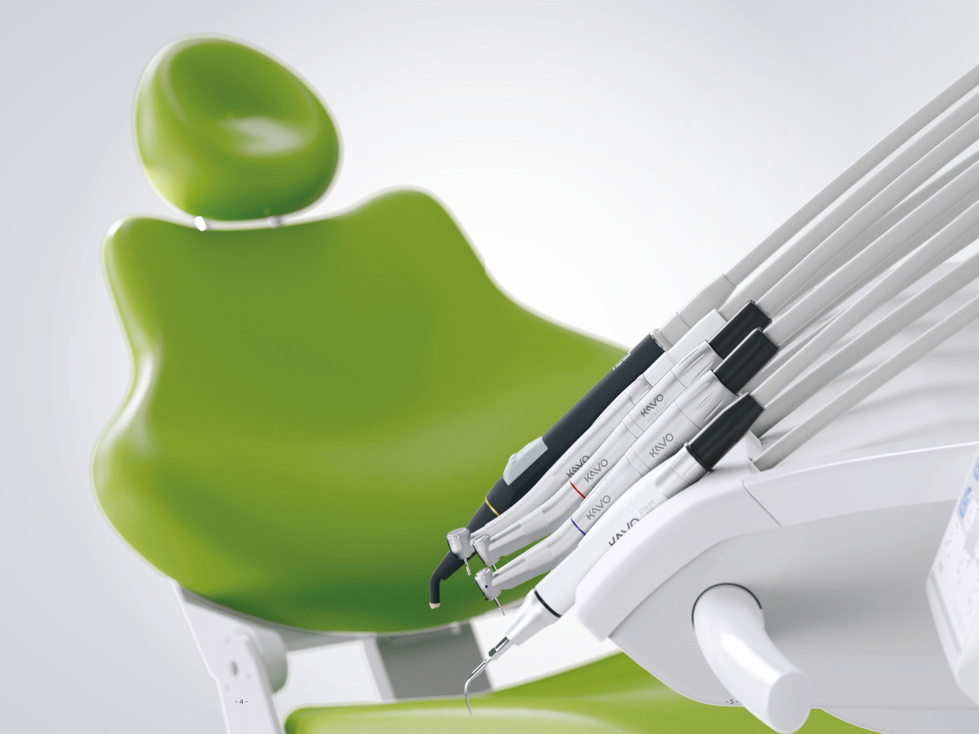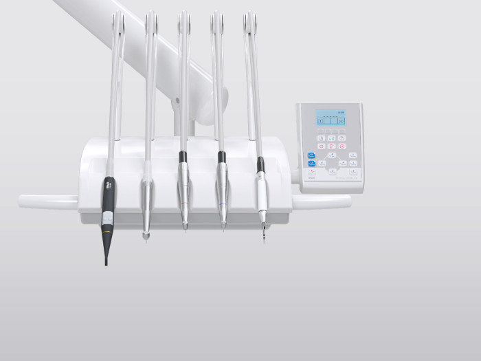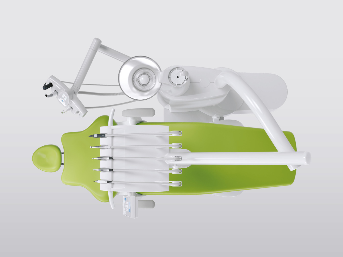 - Версия с верхней подачей инструментов: Увеличенная длина и гигиеничные направляющие шлангов. Доступ к идеально сбалансированным наконечникам происходит быстро и безопасно.