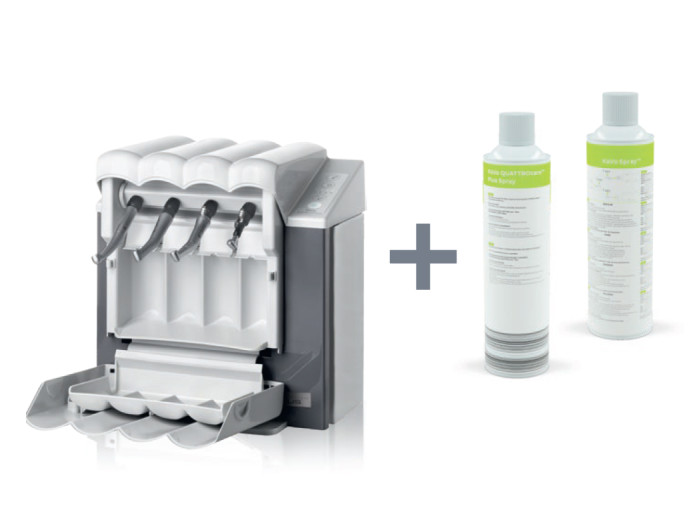 - Удобная панель управления: индикация состояния баллона со спреем, включения прибора и обработки наконечников