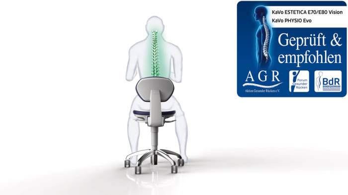 The KaVo PHYSIO Evo and Evo F were the first, and to date, the only dental stools to be awarded the coveted seal of approval from the AGR e.V. for their ergonomic concept (healthy back campaign).