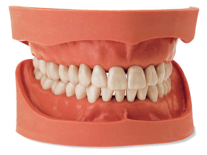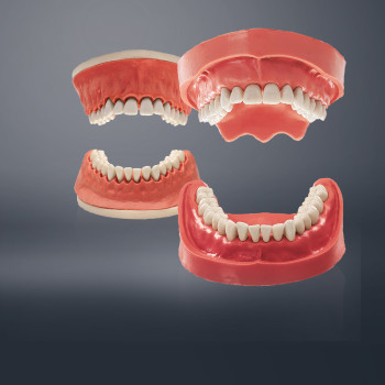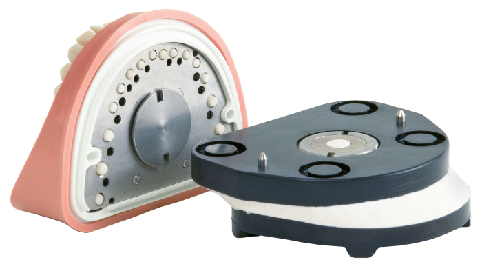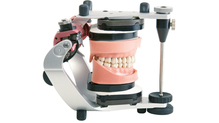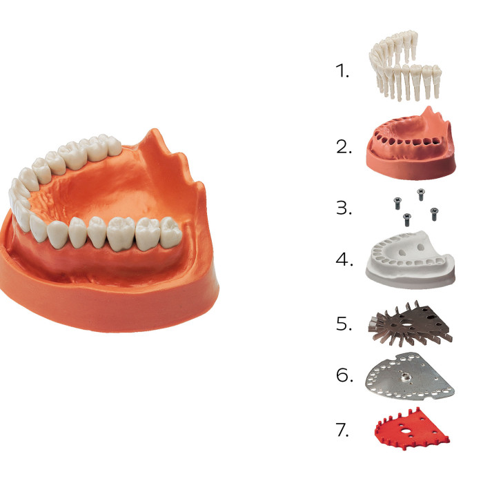The retention system holding the teeth in the model base reliably prevents loss of occlusion when teeth need to be exchanged. The movement of the teeth, together with the interdental space, enables matrix bands and rubber dams to be used.
